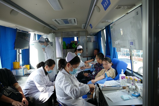(圖1:獻血前溫馨合影) 10月23日上午,秋陽和煦,溫暖人心。按照事先排定的序列,由路途較遠的洋河、龍河、皂河三個區域供水服務中心第一批次獻血,工程公司員工為第二批次,下午是二水廠各部門及水檢公司人員獻血時間。還未到8:30分,三個中心的同事們便已早早來到了公司第二水廠辦公樓前廣場等候。這一邊血站工作人員對獻血車設備儀器接電調試,另一邊大家已經在辦公樓大廳里填表、測血壓、心率。原本9:00才開始的活動,因為大家熱情高昂,而提前開始。填好表,初次體檢合格的同事來到獻血車前自動排隊,有序上車進行再次體檢及獻血。每個人笑意盈盈,因為心中有愛。今年的獻血活動,除有特殊原因不能參加外,共計有,169人報名,經現場測量血壓、心率及進行轉氨酶等項目血液初篩,最終符合獻血要求的實際獻血人數為79人,共計獻血量達 25300ml。